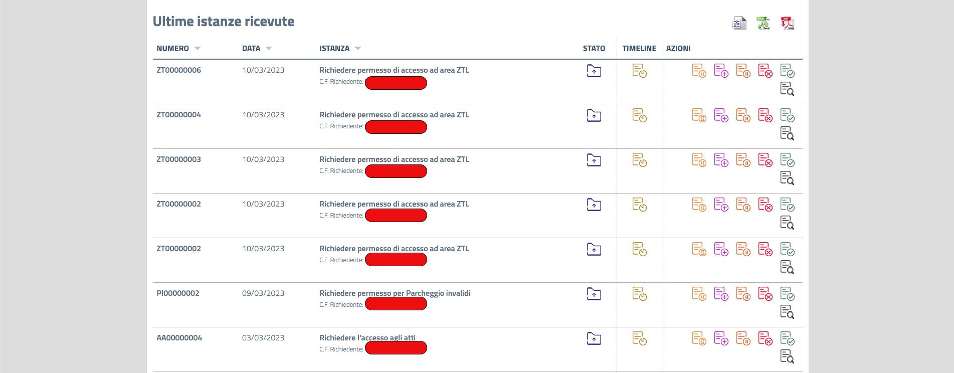 Nell'elenco delle "Ultime istanze ricevute" si trovano le istanze più recenti e non ancora concluse.