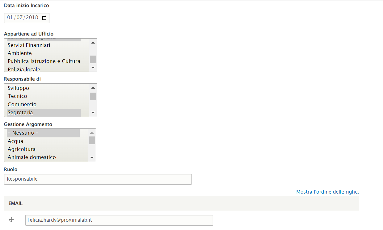 Questo contenuto permette di profilare il personale dipendente da aggiungere ai diversi uffici.