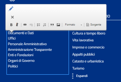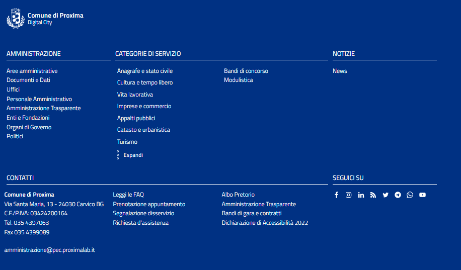 Nella sezione inferiore del sito sono riportati link e dati del Comune. E' possibile modificarli in qualsiasi momento in modo molto semplice.
